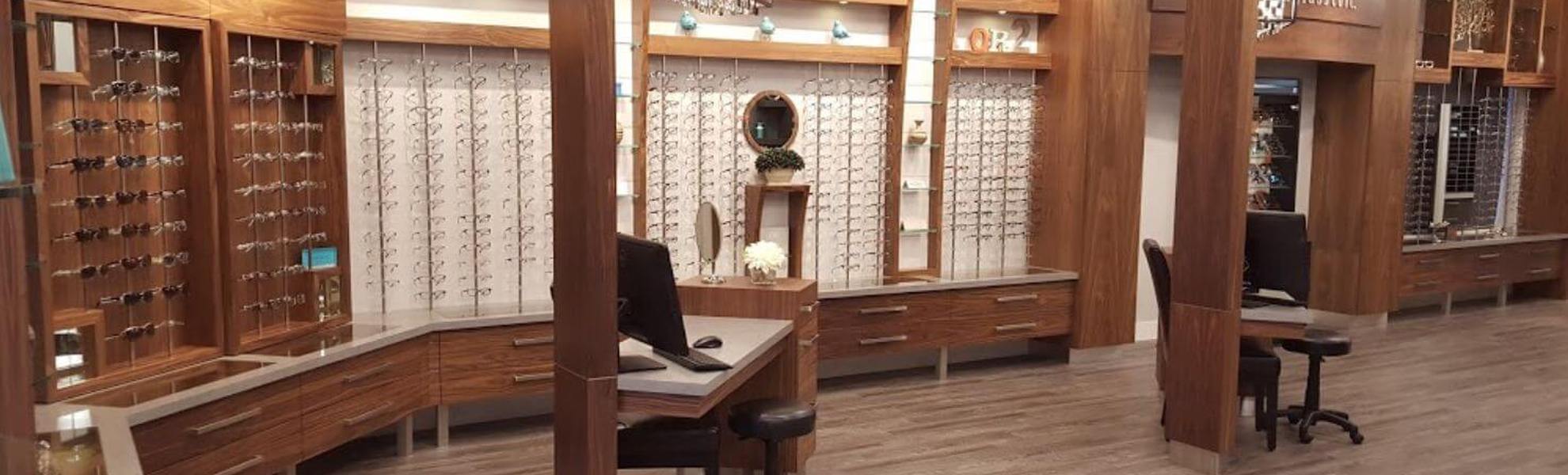 For this high-end commercial space, we wanted to focus not only on quality but on building a well-serviced and comfortable space that would be ideal for both customers and staff. This required working on a range of rooms, including the waiting area, 3 exam rooms, pre-test room, accounting room, staff room, and eye-care lab. Extensive in-floor services were installed for data, electrical infrastructure, and plumbing. And, to make sure the space was as stylish as it was functional, we fitted high-end walnut paneling and cabinetry in the main office.